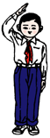 队礼:少先队的敬礼是右手五指并紧,高举过头,表示人民的利益高于一切。 少先队员在升国旗时,在队旗出场和退场时,在烈士墓前扫墓时都应当敬队礼。在集会前列队、行进、检阅时,由大、中、小队长敬队礼,队员立正或注目致敬。在其它场合中遇到师长时,队员也要行队礼。